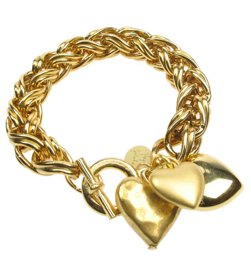 Strewn with romantic hearts this gold plated bracelet is the perfect Valentine gift, Italian gold chain, designed and made in England. We will deliver it in the Angie Gooderham box, wrapped in gold tissue paper.