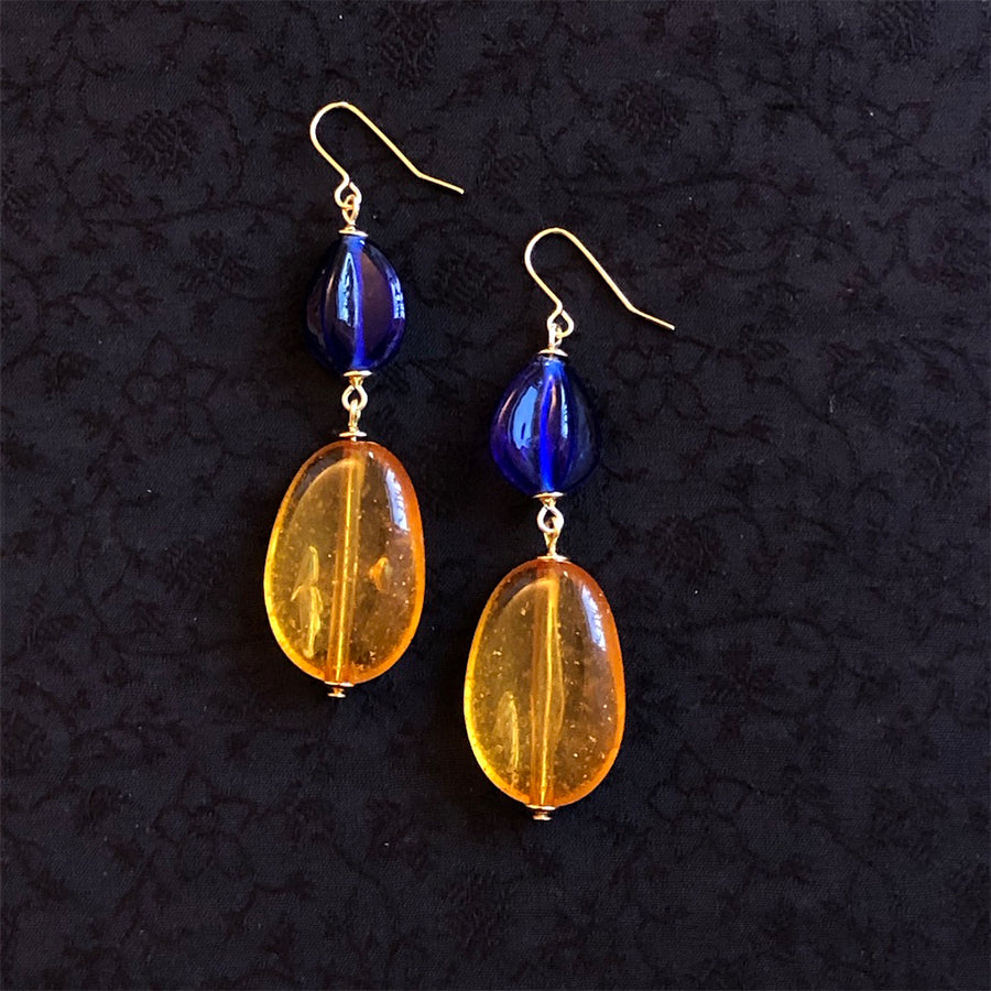 Amber and blue glass drop earrings 100% of proceeds go to Ukrainian charities