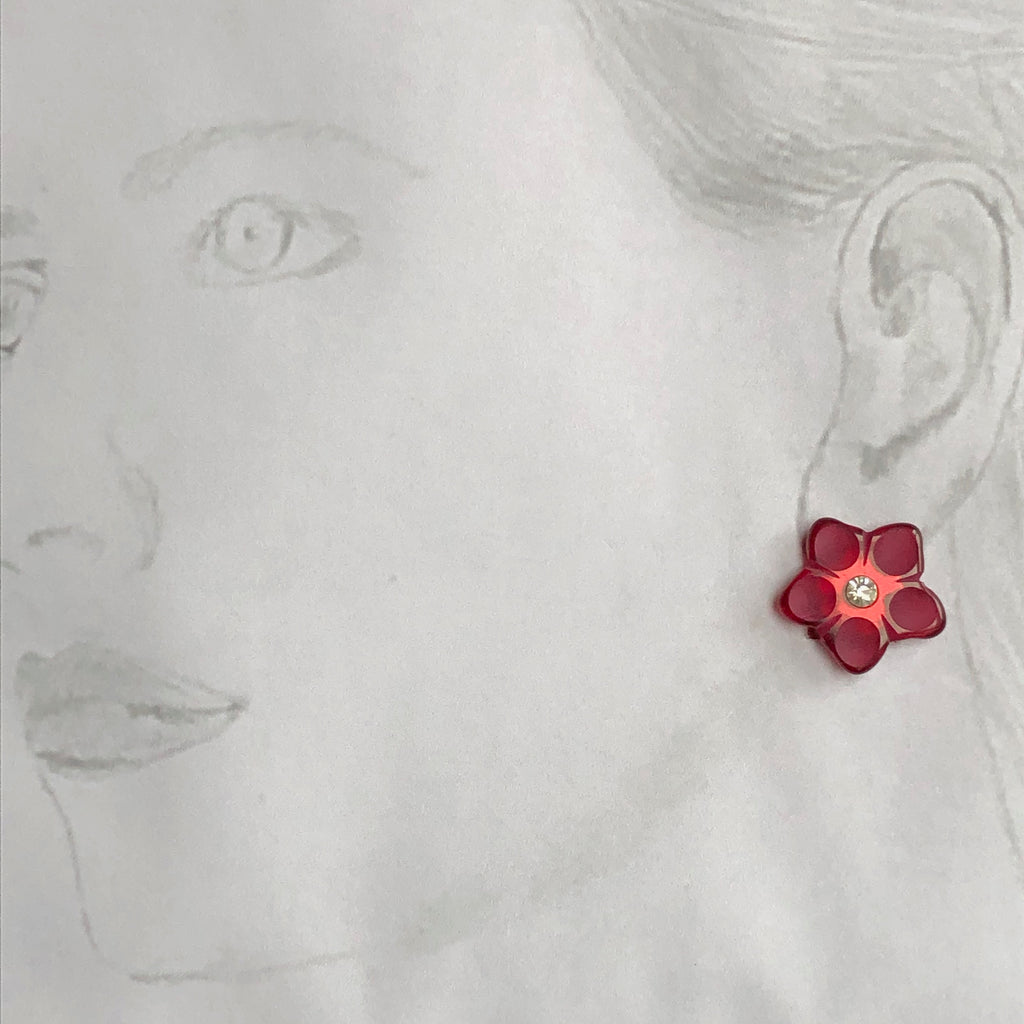 Claret and diamante flower clip ear