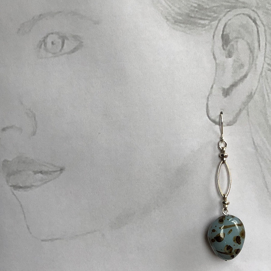 These are the perfect easter earrings, elegant but with a special twist! The soft blue resin beads are speckled like a spring birds eggs!