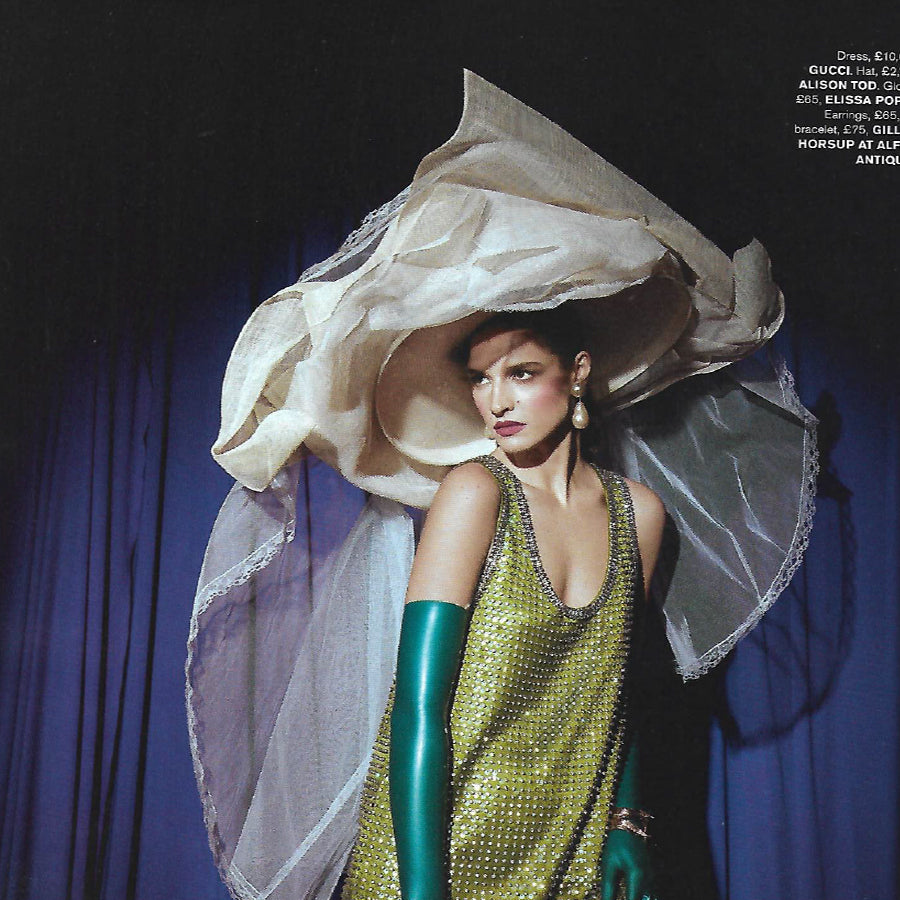 The pearls are vintage from the 1980s with a slight eau de nil wash, and the earrings are designed and made in England.