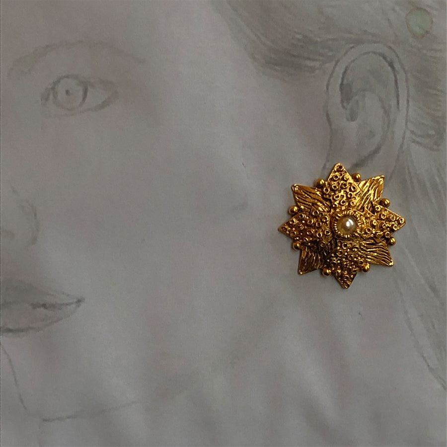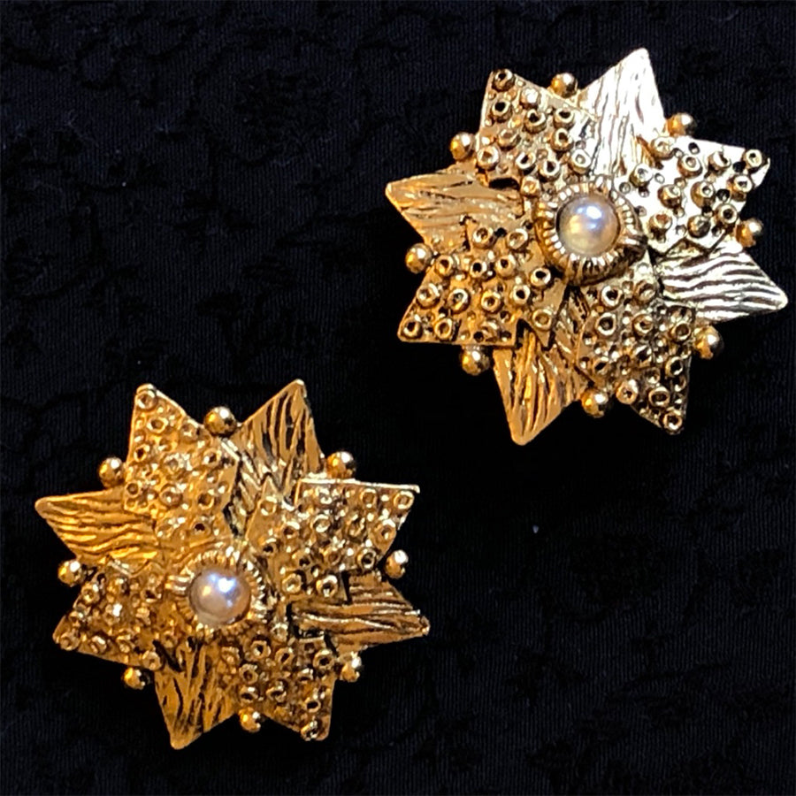 Vintage star and pearl clip earrings