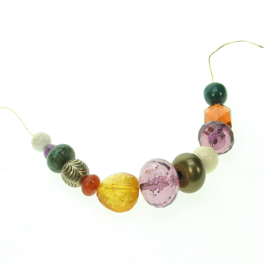 Vivid gem colours makes this the perfect accessory to complement your wardrobe. Threaded on gold plated chain, the necklace measures 18.5 inches (47cms) including clasp. It can be threaded on silver plated or gold plated wire, and is finished with the Angie Gooderham logo.
