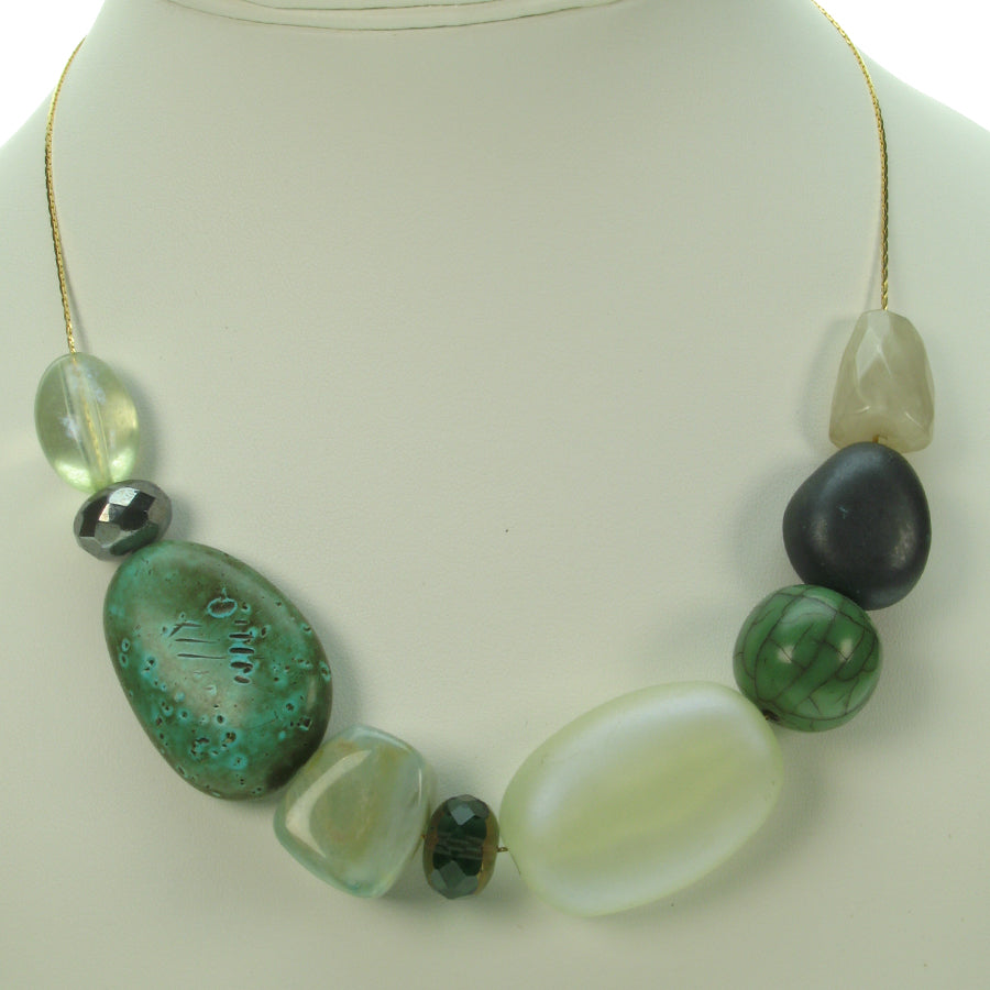 Subtle blend of forest coloured resin bead necklace