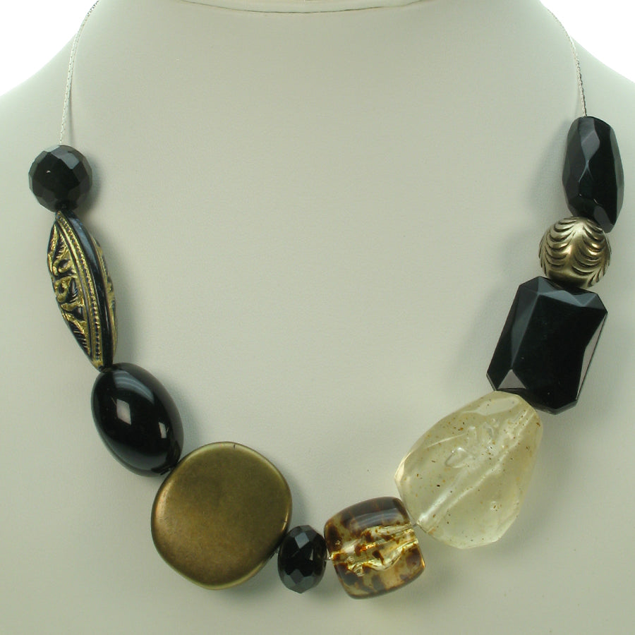 Eye catching mixture of black, bronze and tortoise necklace