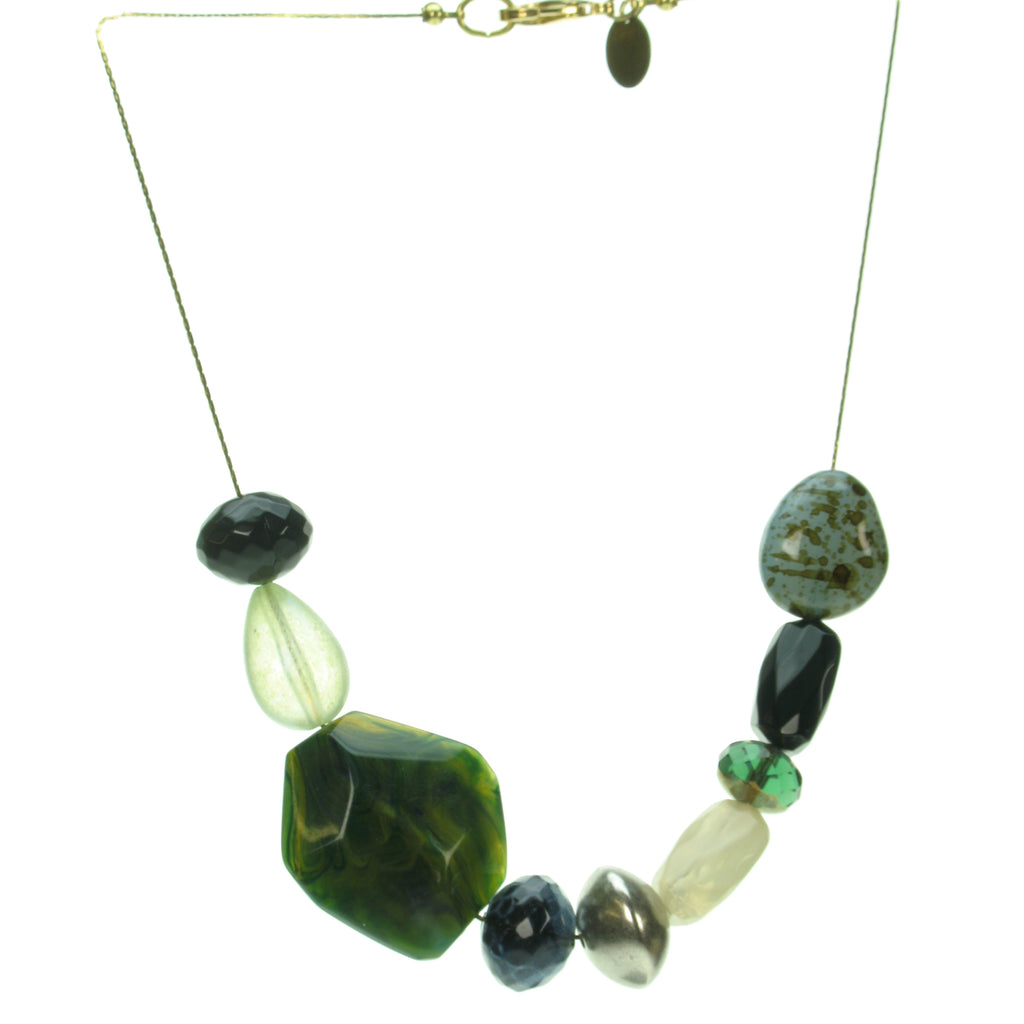 Organic forest shaded resin beads makes this the eye-catching necklace to complement your wardrobe. Threaded on gold plated chain, the necklace measures 18.5 inches (47cms) including clasp. It can be threaded on silver plated or gold plated wire, and is finished with the Angie Gooderham logo.